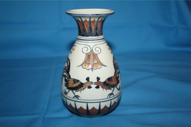 Já em 1911, depois de liquidado ao amigo e prestamista Domingos Leite, que, aliás, como amigo sempre o incentivou, os encargos com o empréstimo da fundação, ei-lo que, com novo empréstimo do mesmo amigo, compra a propriedade da Fonte Nova. É que a fábrica nos Santos Mártires já era acanhada. Mas na sua produção, à base da louça doméstica que se destinava principalmente à Beira Alta e dos azulejos, havia uma marcada faceta artística; e logo desde a primeira fornada nunca deixaram de existir as jarras, os painéis, os pratos decorativos — o artista João Aleluia e os seus oleiros-operáriosartistas nunca deixaram descansar os pincéis.