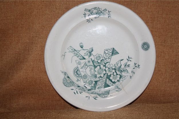 Até à pouco tempo tinha atribuído a este desenho a denominação Leques visto ser o tema principal da decoração, mas visualização de outro prato também com decoração central com leque e mais semelhante com a produção da Fábrica de Loiça de Sacavém fez-me mudar de opinião. É um assunto para outra altura.