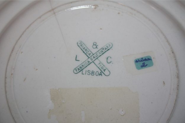 Segundo informações recentes que apurei sobre a produção da Fábrica de Louça de Alcântara, o carimbo desta peça com a inscrição Fábrica d’Alcântara / Louça à Ingleza / Lisboa / L. & C., pode ser balizado entre 1886 a 1889, consistindo então na primeira marca de produção da firma Lopes & C.ª.